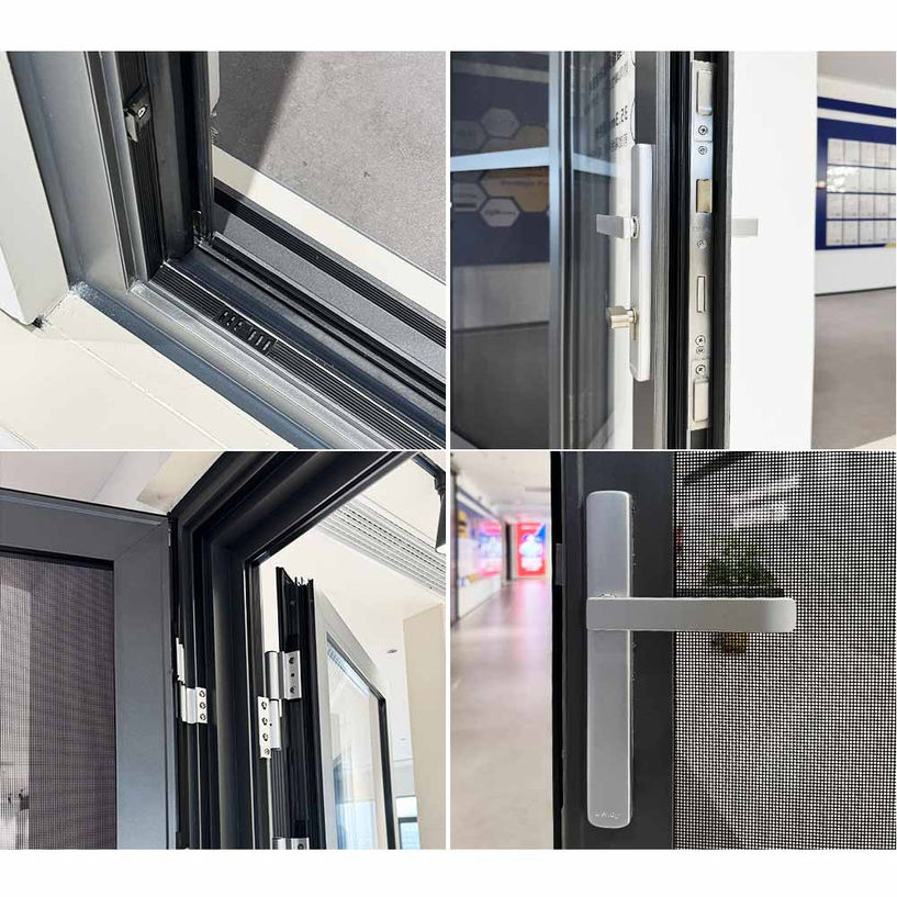 Aluminum swing doors are designed with double-layer insulating glass, which is not only compact in structure, but also has good sound insulation and impact resistance, very durable and strong. During the production process, the color and style can be freely matched, and each one is very fashionable and elegant.